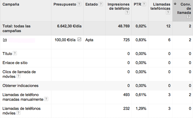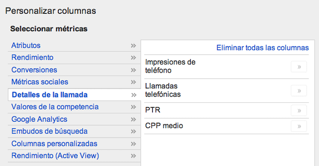 Ya por último solo nos queda añadir las columnas de detalles de llamada en adwords para poder ver estas métricas.