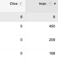 Desde que me dedico a AdWords cuando miro el informe de términos de búsqueda y me aparecía algun término sin clics pensaba que era un término que en algun momento había tenido algun clic pero que en ese período concreto que estaba consultando no había tenido ninguno.