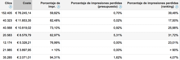 Espero al día en que Google extenda los informes de pérdidas de impresiones tanto para keywords como para anuncios, iria facilitar bastante nuestro trabajo. Me explico: