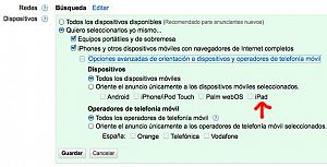 Por ese motivo el Ipad ha sido incluido en nuestras cuentas de adwords como un dispositivo móvil con navegador de internet completo. Para que nuestros anuncios aparezcan en el Ipad tendremos que tener marcada la opción Ipad dentro de dispositivos móviles.
