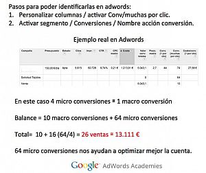 Como resumen: Hay que valorar si necesitamos trabajar con micro conversiones o no antes de nada. El objetivo final debe de ser tener datos suficientes para poder optimizar adwords y tenemos que cogernos a alguna métrica.