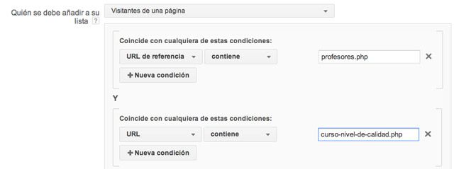 Podría crear una lista con los usuarios que han visitado la url profesores.php y curso-nivel-de-calidad.php sin utilizar la url de referencia pero en este caso no estaría formada por usuarios que visitaron las paginas en ese orden sino que visitaron tal vez varias paginas de nuestro sitio web y entre ellas se encuentran estas dos pero no sabemos en que orden.
