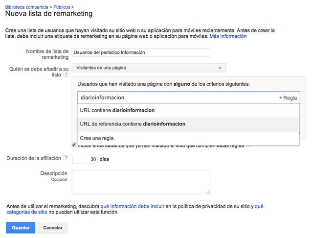 Bien como los lectores de este periódico son mayoritariamente de Alicante veo una oportunidad de negocio que quiero aprovechar , y lo que hago es crear una lista de remarketing con los usuarios que han leído este artículo y posteriormente visitaron mi sitio web con un enlace que hay en dicho artículo hacia mi sitio ,  con la idea de en el futuro cuando realice un curso presencial en Alicante de Adwords usar esa lista para lanzar mis campañas de remarketing.